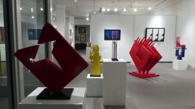 Works stemming from their designs where art and mathematics are joined together, built in aluminum chrome of vibrant colors, in medium format or at the public to join the architecture, will be exhibited next to a series of photos that record the process of artistic achievement.